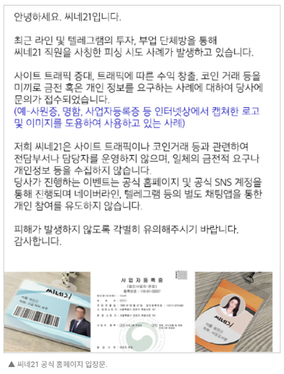 씨네21도 입장문을 내놓았어요.