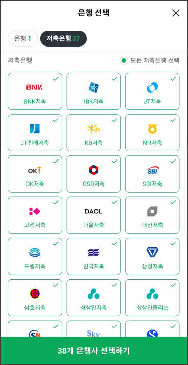 원하시는 조건과 은행을 선택해서