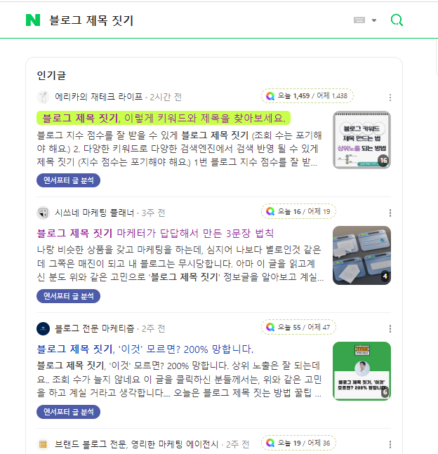 상위 노출 중인 블로그 콘텐츠들에 들어가