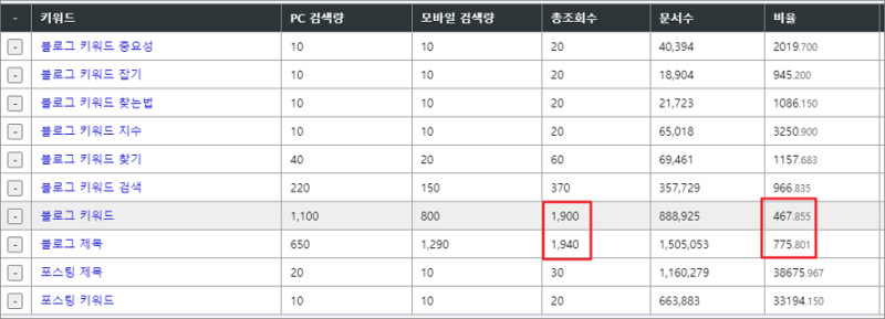 지금 이 포스팅도 유효 키워드 중 검색량이 있고 비율이 낮은 것들을 조합해서