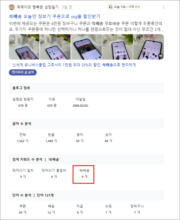 첫 블로그에 키워드 본문 노출이 10회라면 내가 작성하는 콘텐츠에도
