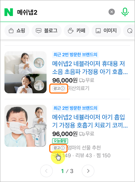 이 "광고"문구가 붙어있는 판매 업체에서 구매를 하면