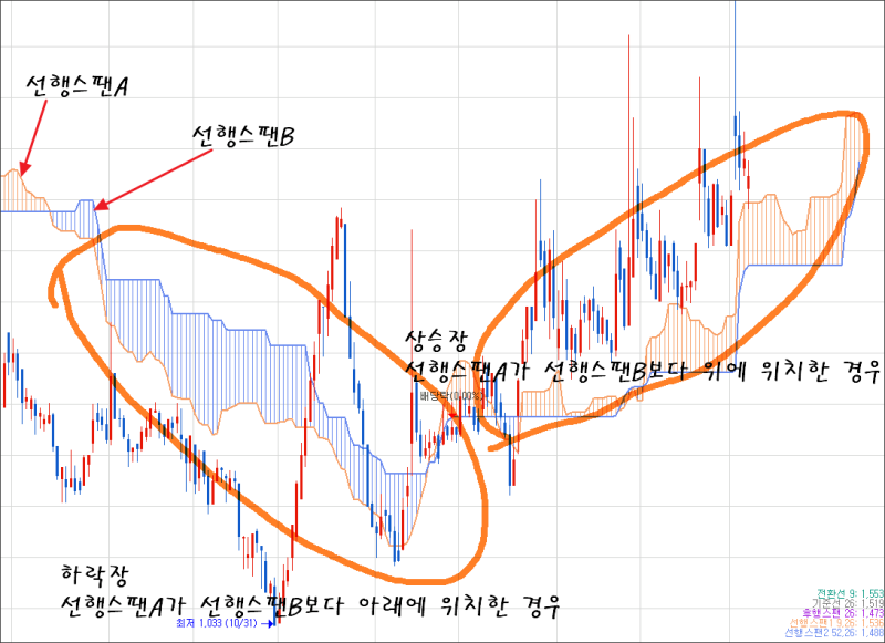 선행스팬 A와 B(가장 중요하게 봐야할 선)