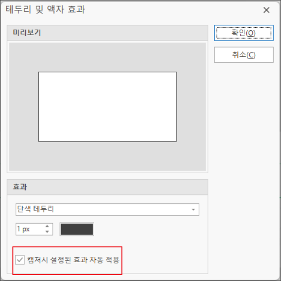 이후 캡쳐한 파일을 복사했을때 자동으로 테두리가 쳐진답니다.