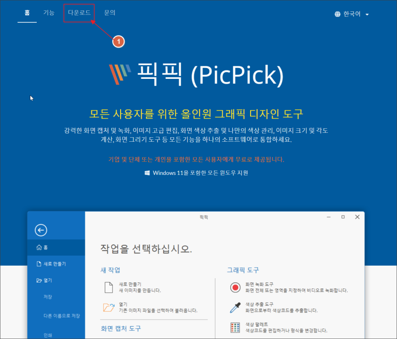 픽픽 공식 홈페이지(picpick.net)으로 이동하세요.