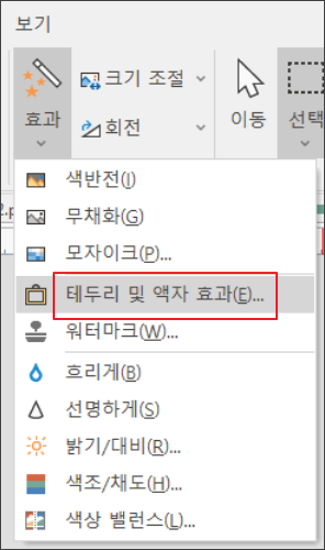 바로 효과 > 테두리 및 액자 효과인데요.
