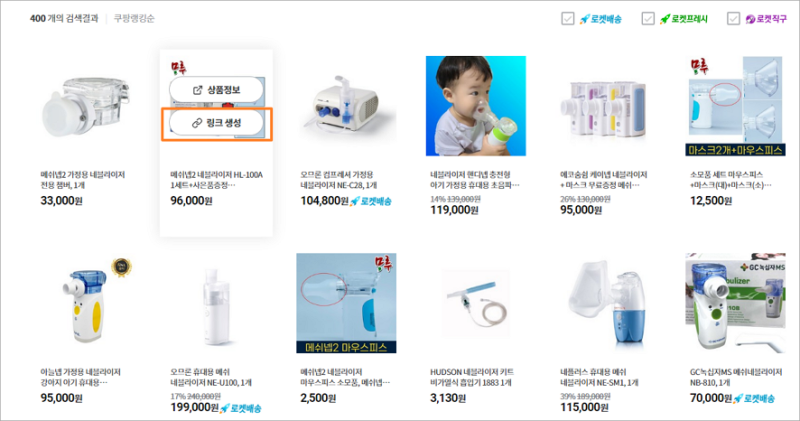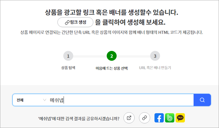 제 계정으로 쿠팡 파트너스에서 링크를 생성하고