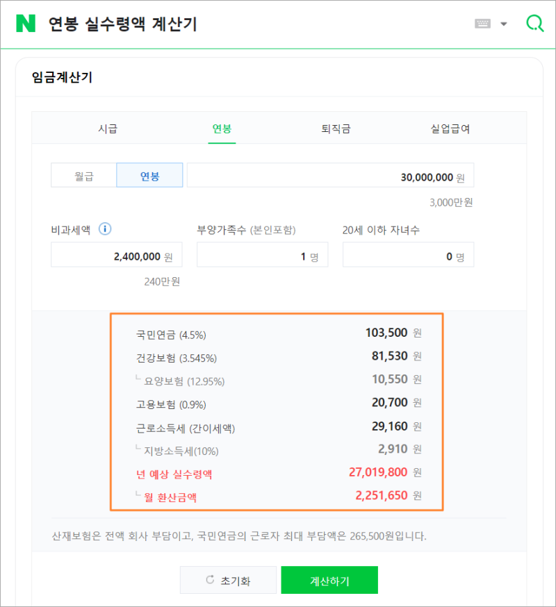 연봉 실수령액 계산기