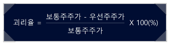 보통주와 우선주 사이의 가격 차이를 나타내는 지표인 괴리율(discount rate)은 두 종류의 주식 간 가격 차이의 정도를 백분율로 나타낸 건데요.