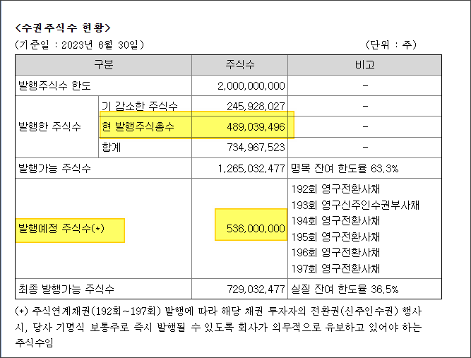 현재 HMM의 발행주식 총수는 약 489,039,496주인데 발행 예정 주식수가 이보다 큰 536,000,000주입니다.
