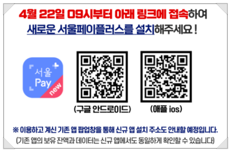 그러니 미리 서울페이+ 앱을 다운로드하여 준비해 주셔야 합니다.