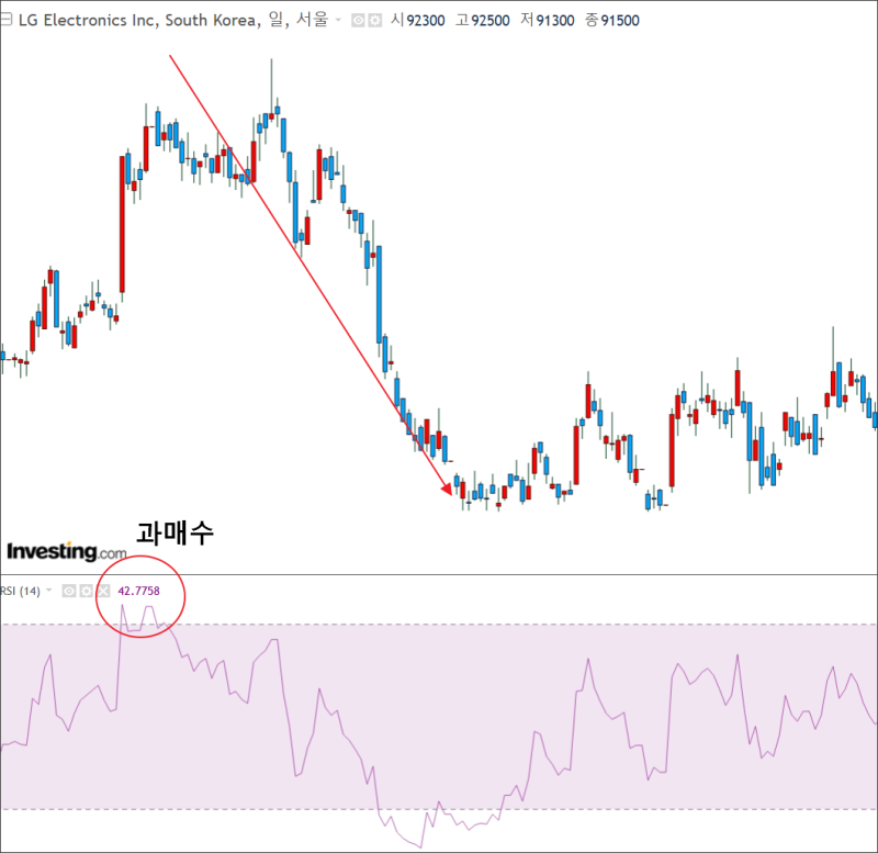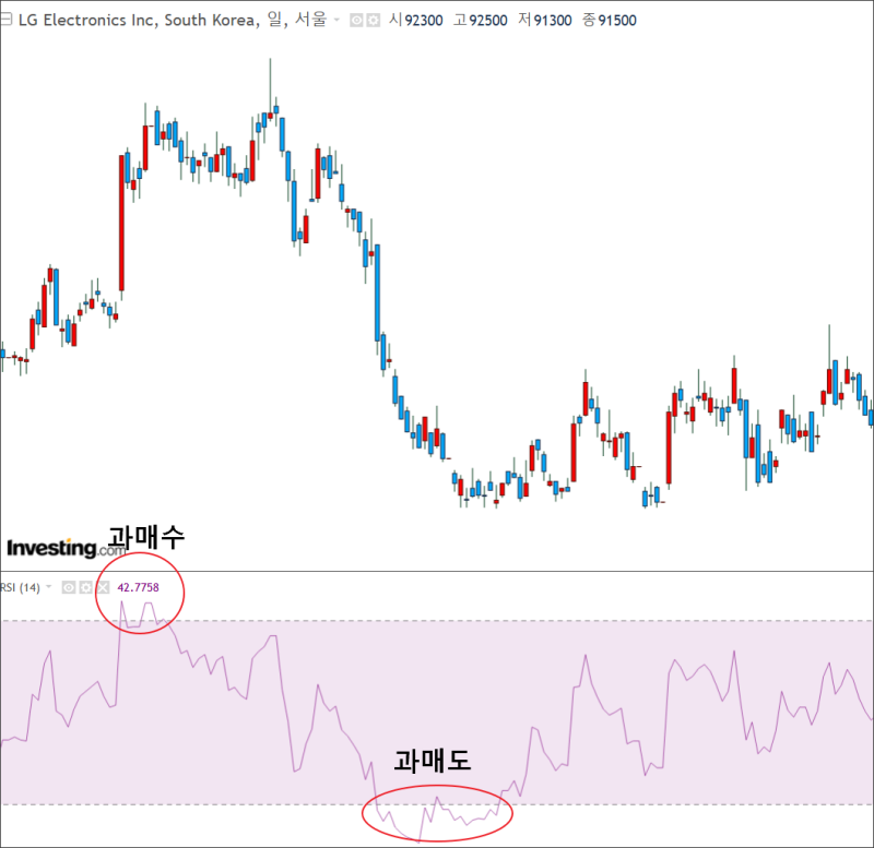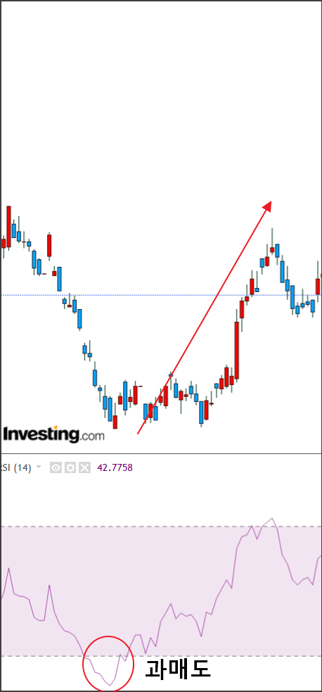 반대로, RSI가 30 이하로 과매도 상태에 있을 때는, 많은 투자자들이 주가가 너무 낮아짐을 인식하고 구매 기회로 보겠죠?