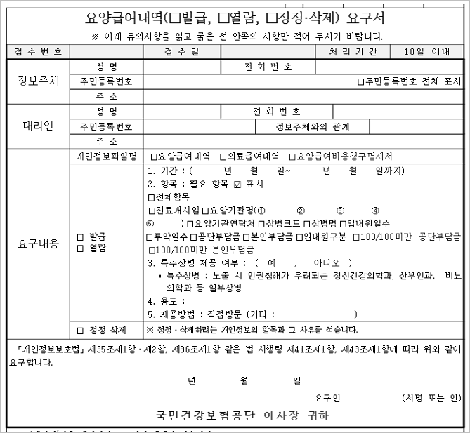 요양급여 내역서는 의료기관에서 발생한 총 진료비, 공단부담금, 환자가 부담한 본인 부담금, 병원에 진료를 받은 날짜, 외래 또는 입원, 진단명과 질병분류 코드 등 내용을 확인할 수 있습니다. 모든 병원 방문 기록이 포함되어 있기 때문에 거절하여야 합니다.