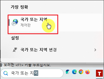 1. 윈도우 검색창에 "국가 또는 지역"이라고 검색해주세요.