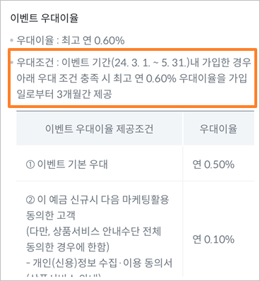 단 우대금리 0.6%는 이벤트성 우대금리로
