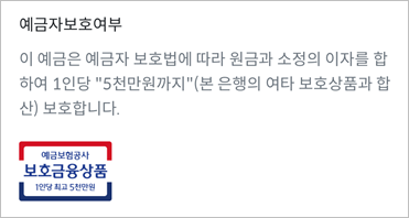 예금자 보호 : 원금과 소정의 이자를 합쳐 1인당 5천만원까지 보호