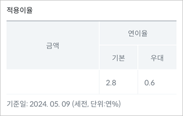 5월 9일 기준 기본 금리는 2.8%입니다.